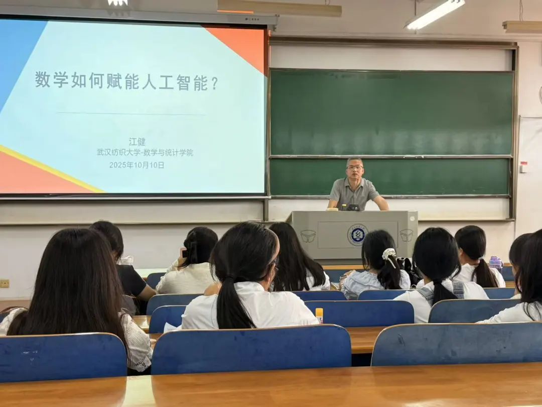 10月10日,江健老师在崇志楼带来“数学赋能人工智能”主题讲座,用生动案例揭示数学在AI底层算法中的“硬核”力量,激发新生“学数学、用数学、爱数学”的专业热情。