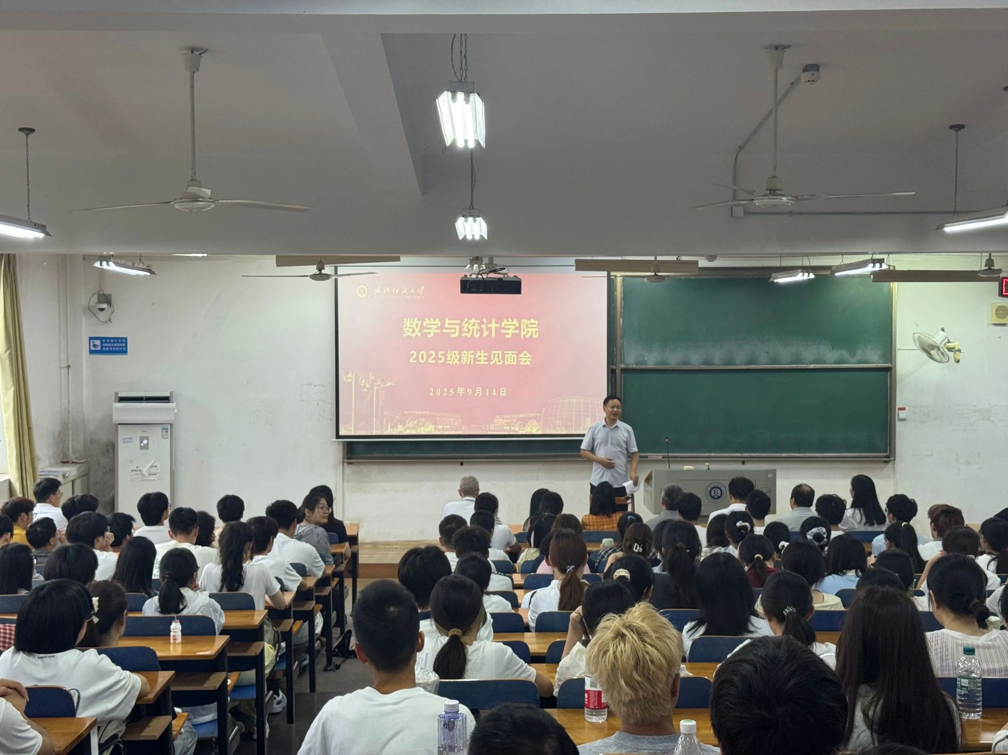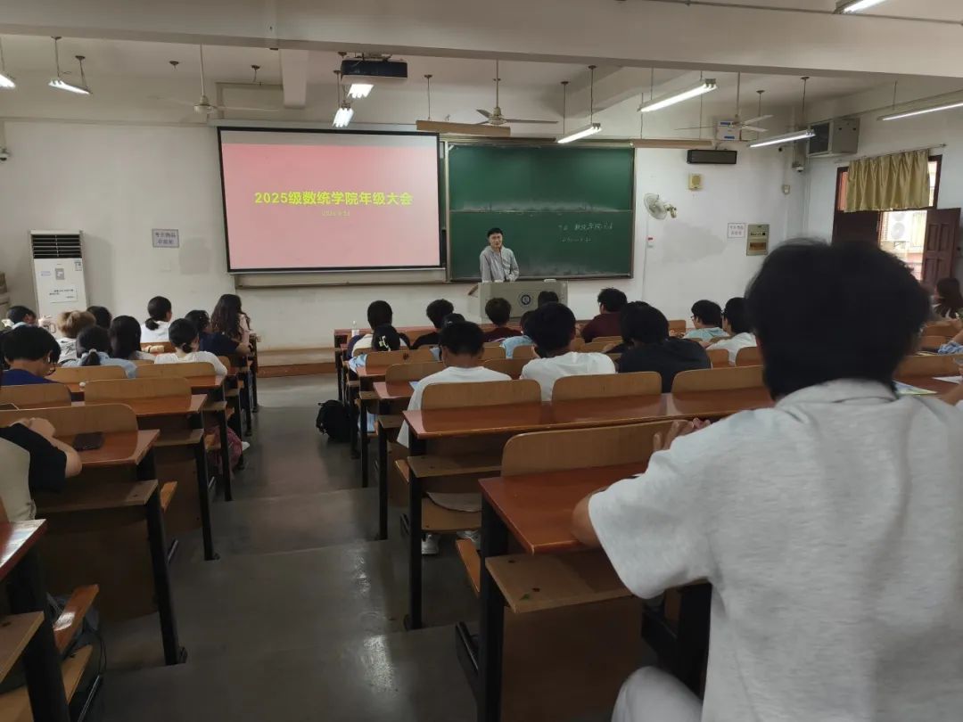 思想是行动的先导,信念是前行的力量。学院以“开学第一课”为契机,于9月14日上午在崇志楼116教室召开2025级新生见面会。学院领导班子、各系(中心、办)主任、支部书记、教学督导组组长、班主任、辅导员集体亮相,与全体研究生、本科生面对面,讲述纺大数统薪火故事,解读“严谨、求实、创新”院训精神,引导新生把个人成长融入强国建设、民族复兴的时代洪流,在心中播下“强国有我、数海领航”的种子。