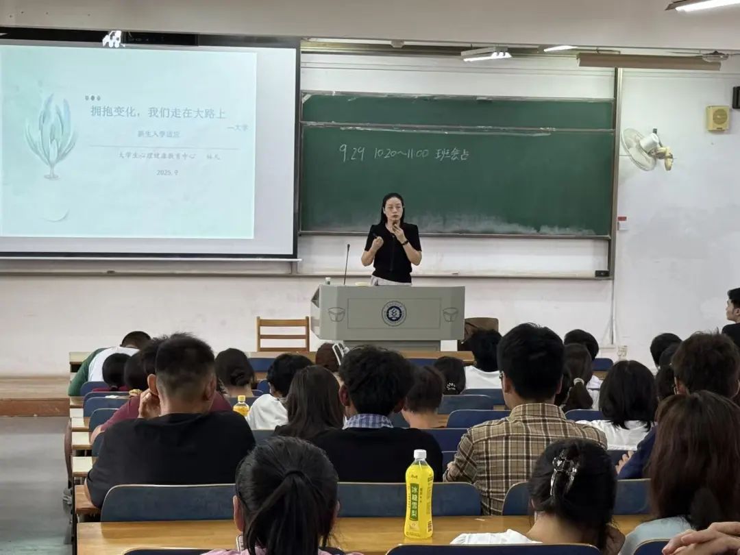 9月29日,大学生心理健康中心林凡老师在崇志楼作“拥抱变化,我们走在大路上”专题讲座,以人际矛盾、学业焦虑等真实案例引导新生与自我对话、与他人共情。