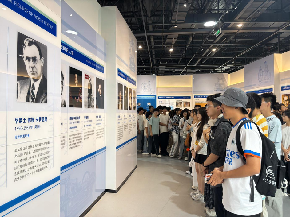 的归属感,传承“自强不息,经天纬地”的纺大精神,9月13日上午,学院党委副书记陈国鹏、辅导员曾琦组织全体2025级新生前往纺织科技馆,开启一场兼具知识性与趣味性的纺织文化探索之旅。在讲解员的引导下,同学们穿梭于“传统织造”“现代产业”“未来纺织”三大展区,从黄道婆纺车到万吨级碳纤维生产线,从月面国旗“石头版”到火星探测器降落伞,一件件实物、一段段视频,生动诠释了“纺织+”如何服务国计民生、走向星辰大海。