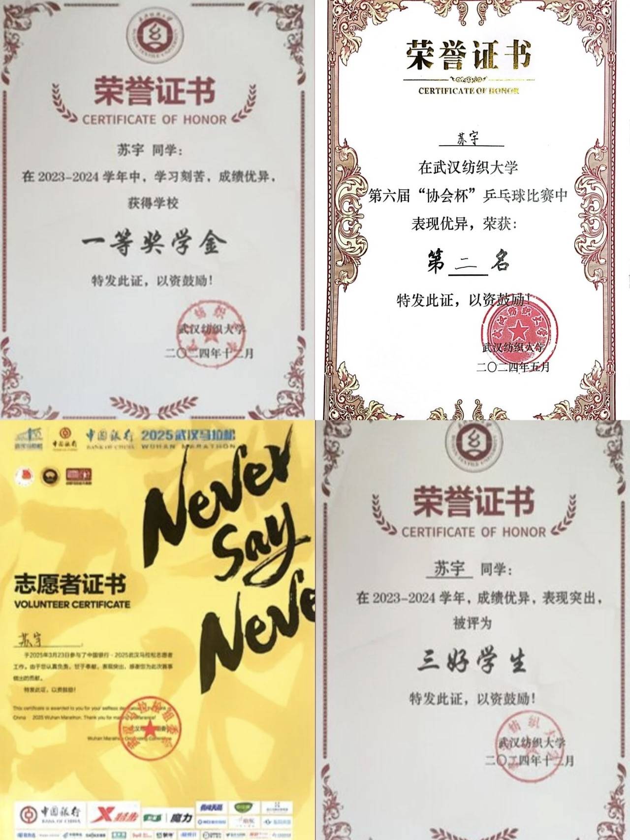 行稳致远,方能笃行不怠;追求卓越,终会收获成长。苏宇同学用日复一日的坚持与积累,书写了属于自己的青春华章。希望全体同学以她为榜样,在各自的领域脚踏实地、逐光而行,让每一份投入都成为未来的伏笔,在青春的征程上绽放属于自己的光芒。