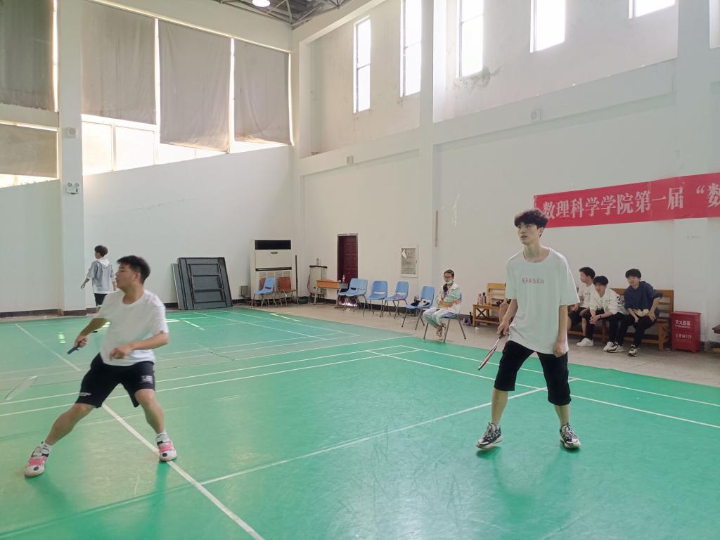 第一届羽毛球比赛于大学生活动中心羽毛球馆如期举行。数理学院各班组建一支队伍参赛,数理学院辅导员熊亚雄、方媛出席此次比赛。