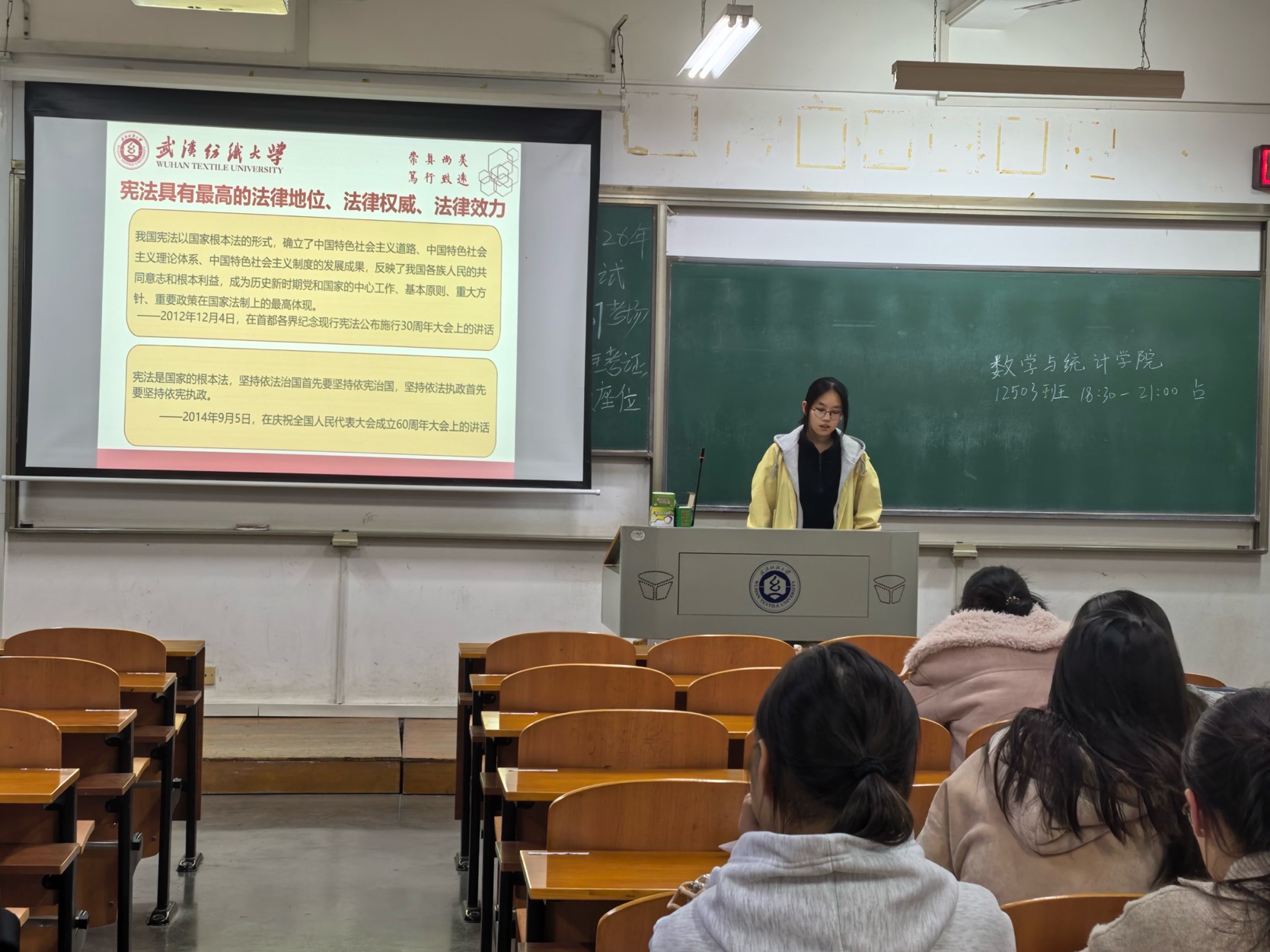 各班级开展以 “尊崇宪法地位,践行法治精神” 为主题的第十三周班会。本次班会由各班班长主持,全体同学参加。