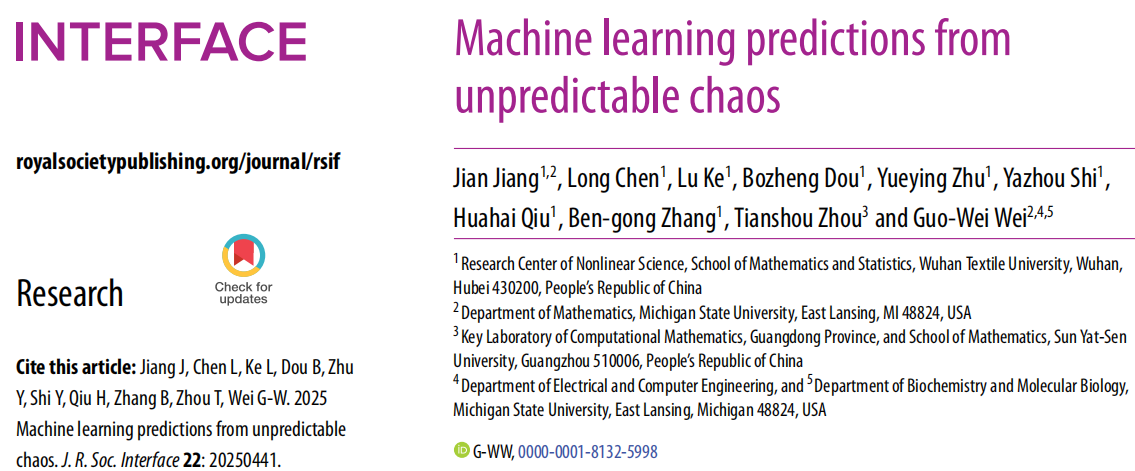 江健教授团队在药物设计方面取得重要研究进展。相关成果以“Machine learning predictions from unpredictable chaos”在物理科学与生命科学的交叉领域顶级期刊《Journal of the Royal Society Interface》上发表(J. R. Soc. Interface 22: 20250441, 2025,文章链接//doi.org/10.1098/rsif.2025.0441)。江健为第一作者,探花做爱