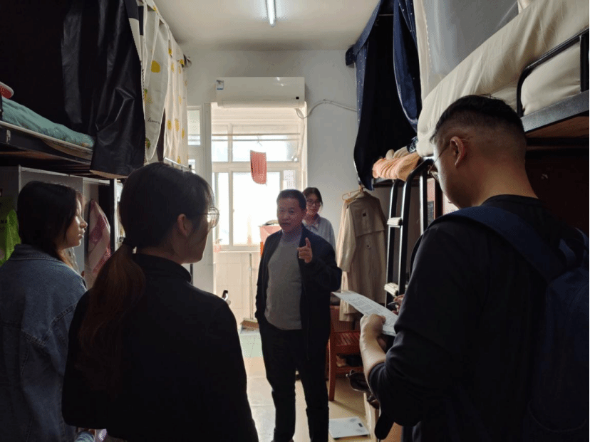 党委副书记陈国鹏带队,辅导员熊思健、学生会主席李代欣共同参与,对全院研究生宿舍开展“全覆盖、无死角”的安全突击检查。