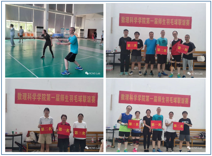 第一届师生(研究生)羽毛球联谊赛”。联谊赛通过师生间三种比赛方式进行,分别是女单,男双和混双,参赛师生以饱满的热情投入到此次联谊赛中。参赛选手们大显身手,学生们将自己的青春与活力都绽放了出来,平时成熟稳重的老师们也展现出了焕发的活力,现场观众不时爆出阵阵掌声。赛后,老师和学生们意犹未尽,进一步交流并进行了表演赛。