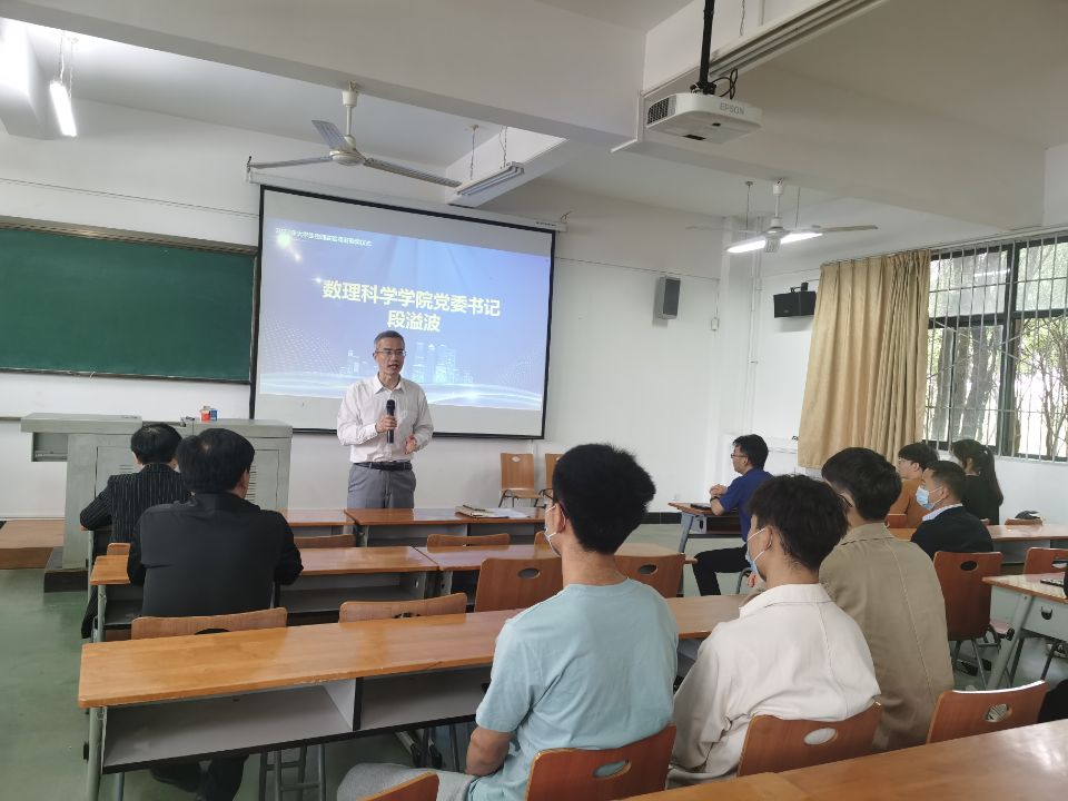 大学物理实验竞赛的组织和实施过程进行了简短介绍,重点阐述了以“数理学院协同创新中心”为平台、以“三赛一训”为载体,形成了以“赛教融合、助力考研”为特色的协同创新育人模式,他表示学院将为参加省赛和国赛的队伍提供全力支持。他还结合习近平总书记在庆祝中国共产主义青年团成立100周年大会上的重要讲话精神,以“奋斗是青春最亮丽的底色,行动是青年最有效的磨砺”鼓励参赛同学,在未来的赛道上奋力奔跑,争取为探花做爱