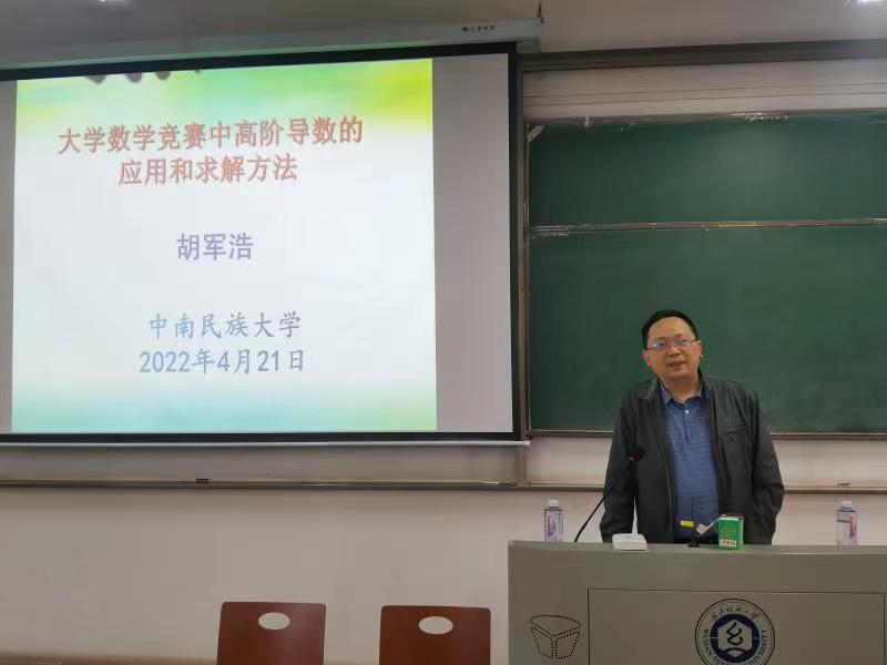 学生做了《大学数学竞赛中高阶导数的应用和求解方法》的讲座:大学数学竞赛中函数的高阶导数的应用和求解问题,是非常基础且考查的难度系数不太大的问题,主要罗列了历届全国大学生数学竞赛初赛中,函数的高阶导数的应用和求解问题的典型例题和常用方法。