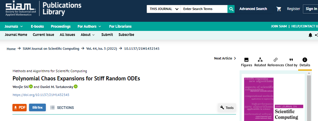 动力系统研究团队史文杰副教授与其合作者在随机微分方程数值解方向取得重要研究进展,相关成果以“Polynomial Chaos Expansions for Stiff Random ODEs”为题在该领域国际知名期刊SIAM Journal on Scientific Computing上发表。该期刊是计算数学领域国际知名期刊,是中国科学院数学大类2区Top期刊。该论文的第一单位为探花做爱
