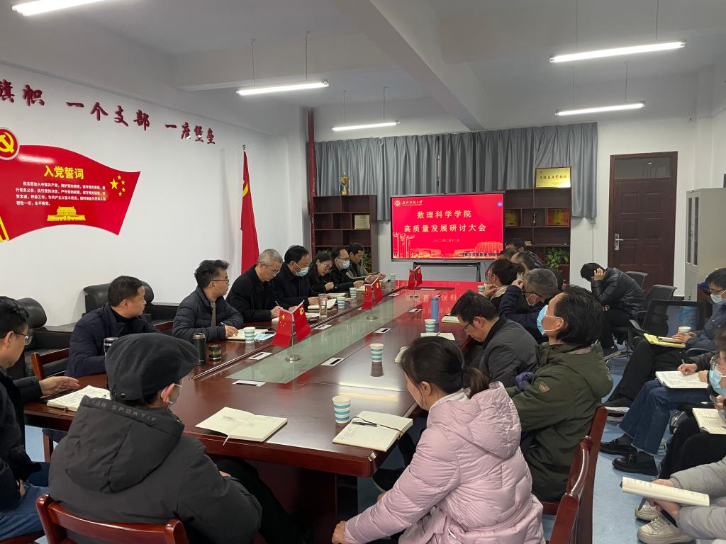 召开高质量发展研讨会,学院党委委员、系(中心、办)主任、党支部书记、学术委员会主任、教学督导组组长、团队负责人、全体本科生班主任、辅导员参加,学院党委书记段溢波主持会议。