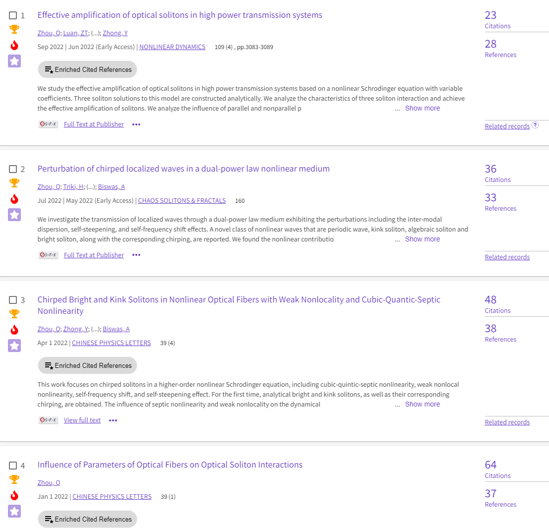 3月,全球领先的信息分析公司爱思唯尔正式发布2022“中国高被引学者年度榜单”。2022爱思唯尔“中国高被引学者”榜单以全球领先的引文与索引数据库Scopus作为统计来源,采用了上海软科教育信息咨询有限公司开发的方法,最终得到5216名各学科最具全球影响力的中国学者。光学团队周勤教授再次入选物理学科中国高被引学者,也是湖北省属高校中物理学科的唯一上榜者,彰显出探花做爱