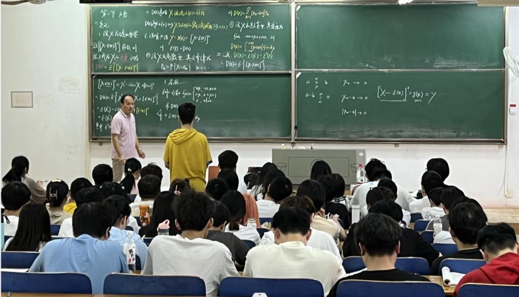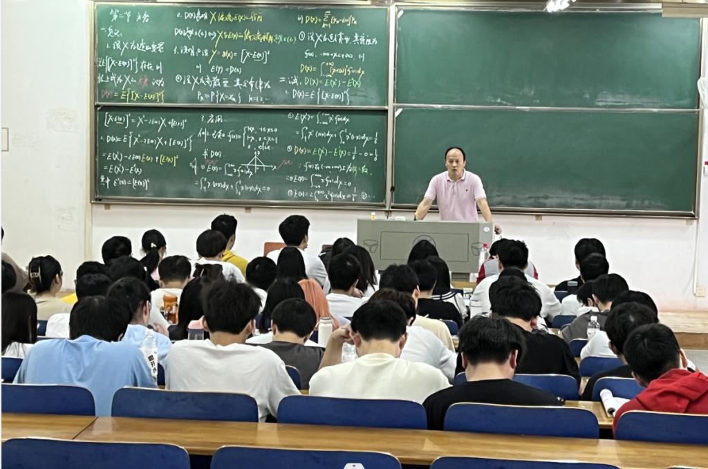 大学数学中心毛耀老师以《随机变量的方差》一课向各位观摩的老师和上课的同学展示了如何将课程思政融入教学。他首先回顾了上次课学习的随机变量的数学期望,谈到随机变量在日常生活中的应用,例如股票中的收益、努力学习后的考研目的,通过列举探花做爱