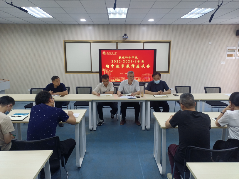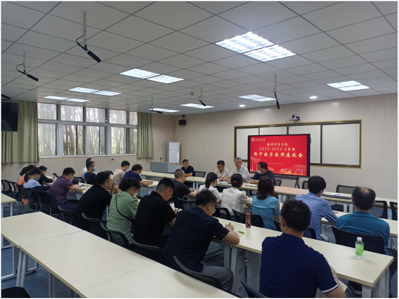 于5月18日召开了2022-2023学年第二学期期中教学教师座谈会。学院党委书记段溢波、院长汪胜祥、副院长许明耀、副书记陈国鹏、各系(中心)主任及教授、骨干教师、青年教师等19位教师代表参加了座谈会,会议由副院长许明耀主持。