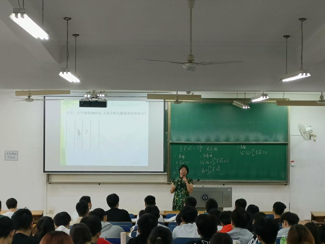 冯存芳老师讲授的课程是《大学物理BⅡ》,主题是“静电场中的导体”。冯存芳老师对教学内容、教学方法等进行了精心设计,在课堂教学中,多媒体课件和板书相结合,讲课思路清晰、表达自然,师生互动积极,课堂气氛活跃,充分调动了学生学习的主动性和兴趣。