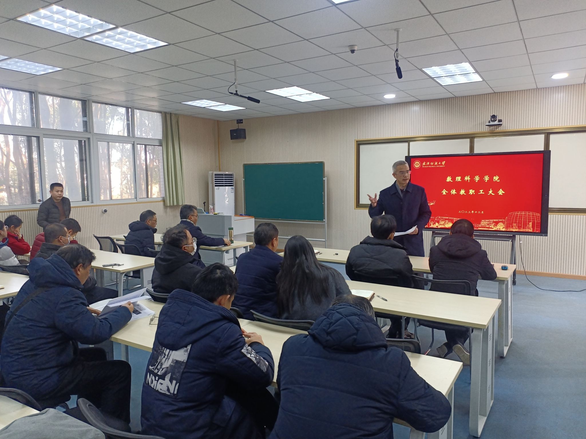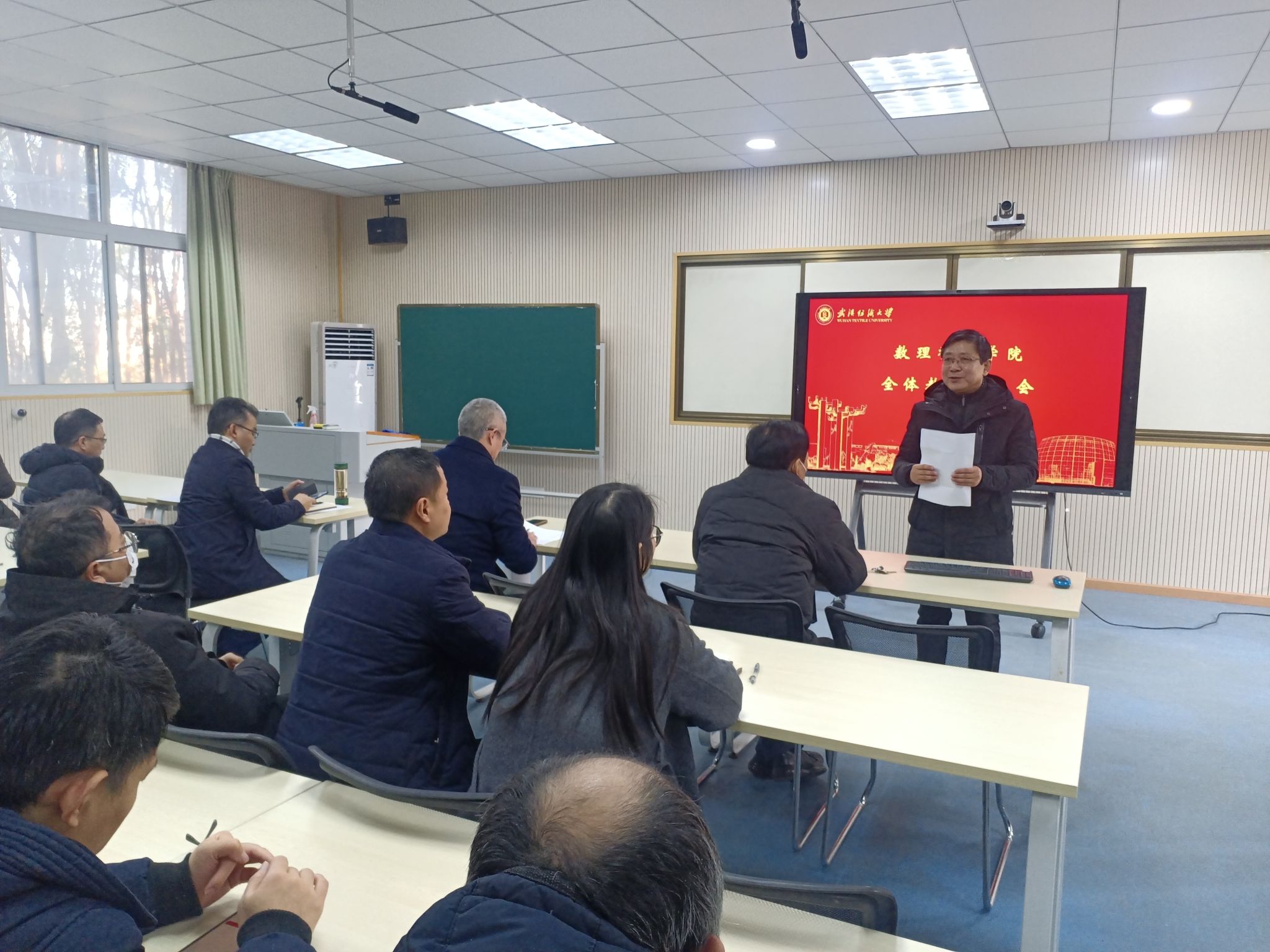 学院院长汪胜祥代表学院班子向大会进行2023年度工作述职,他从党建、党风廉政建设、教学、科研、职称评审、人才引进、学生等方面对2023年学院取得的成绩和存在的问题进行了全面系统的总结和回顾。他表示2023年年各项工作圆满完成,衷心感谢全院教职工辛勤付出。