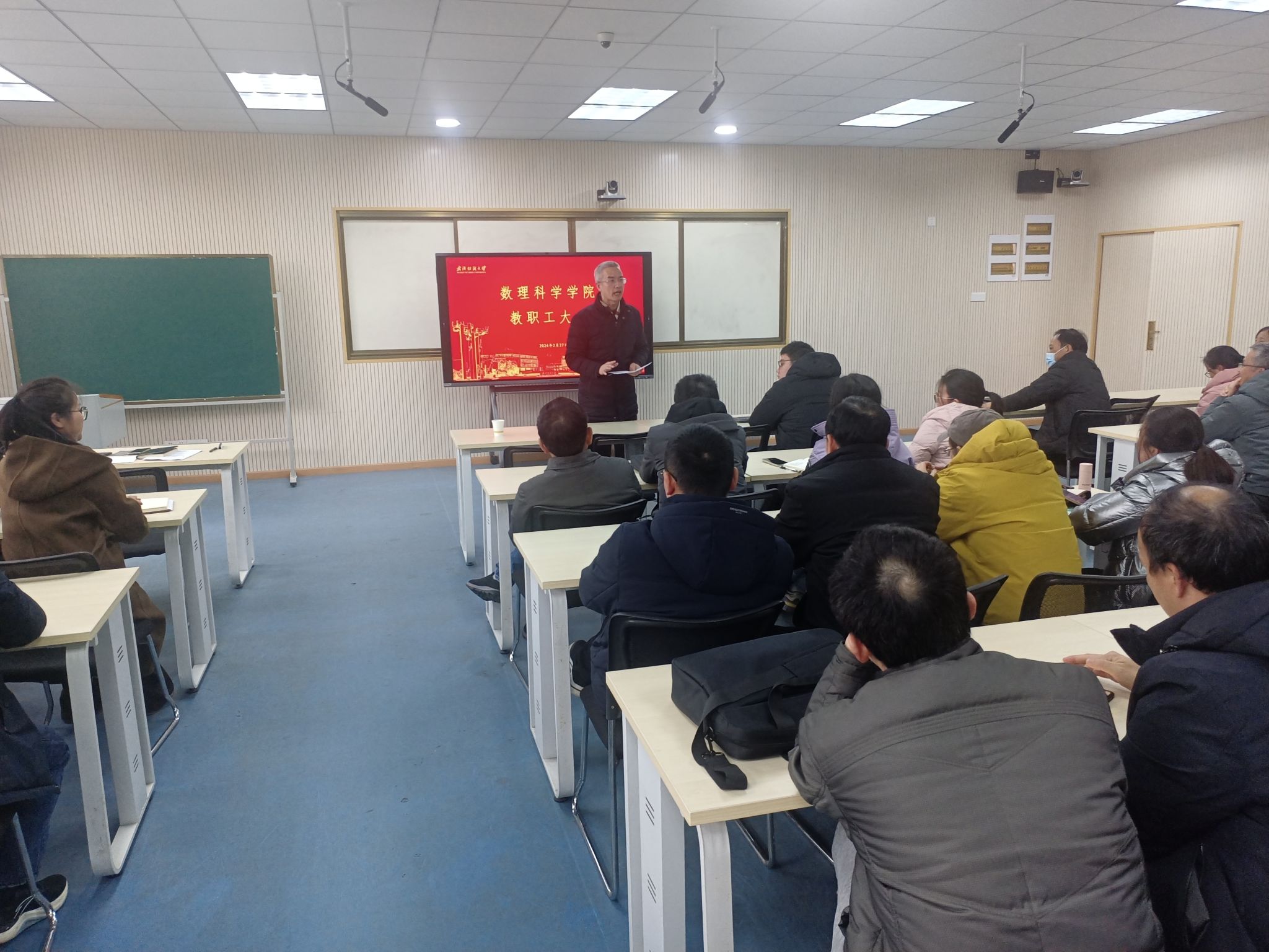 在崇文楼205召开新学期教职工大会,学院党委书记段溢波主持会议。