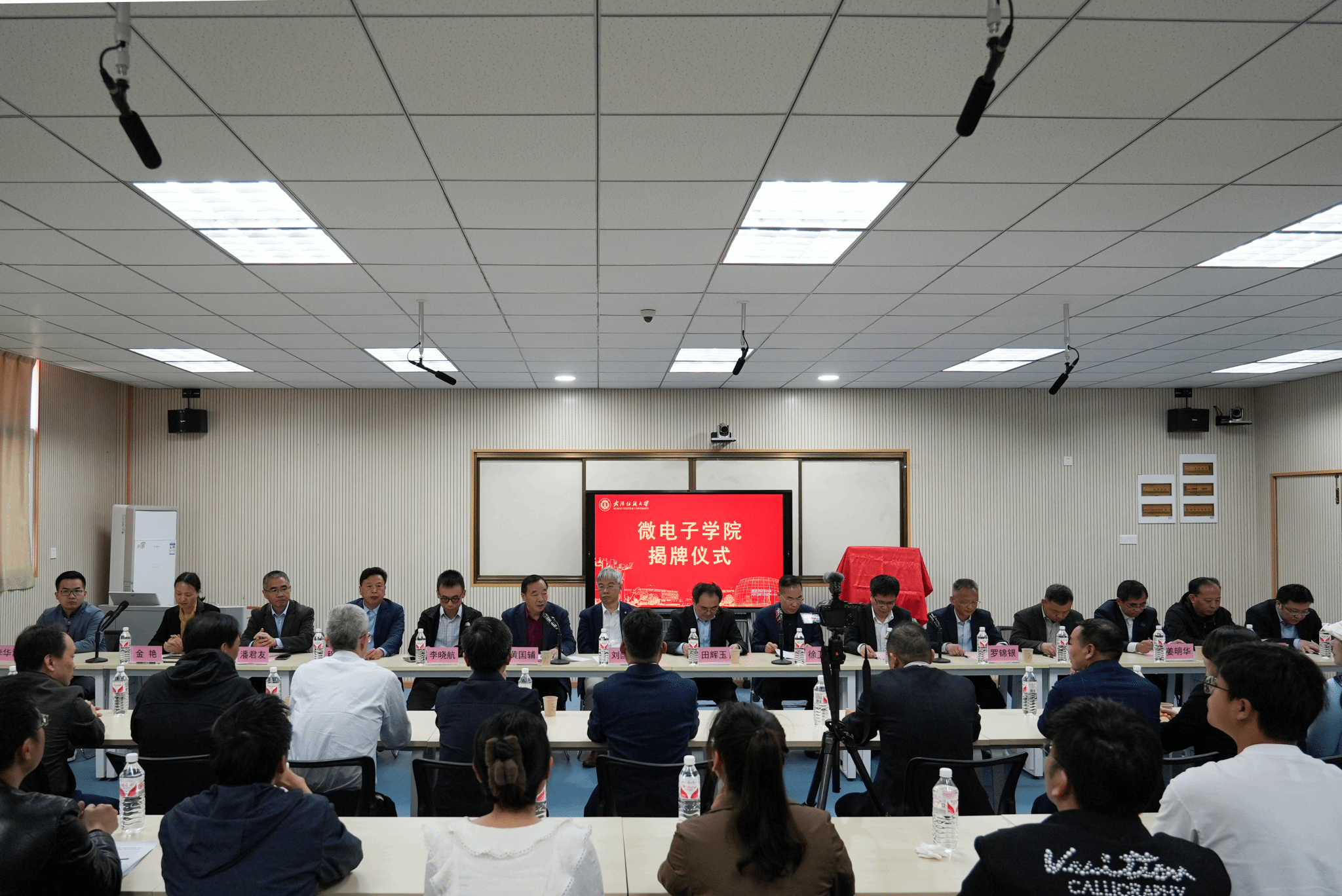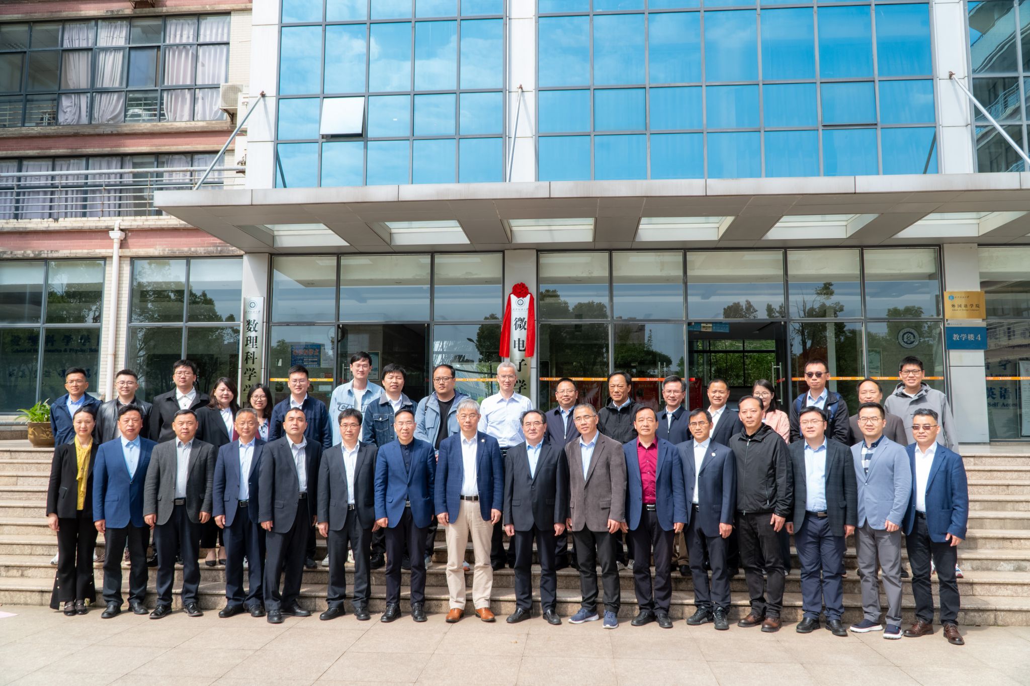 在阳光校区4号楼205室,举办微电子学院揭牌仪式。中车集团首席科学家、功率半导体与集成技术全国重点实验室常务副主任刘国友教授,国家重点研发专项首席科学家、科罗拉多大学博尔德分校终身教授、华中科技大学杨荣贵教授,沙特阿拉伯阿卜杜拉国王科技大学李晓航教授,国家重点研发专项首席科学家、江南大学敖金平教授,国家重点研发专项首席科学家、TCL 集团副总工程师、浙江光昊光电科技有限公司董事长潘君友教授等与会,校党委书记田辉玉、校长徐卫林院士、校党委副书记、副校长罗锦银、校纪委书记程碧海、副校长姜明华、副校长冯军、校党委常委、组织部部长金艳、校党委常委王栋、校党委常委李华君出席,探花做爱
