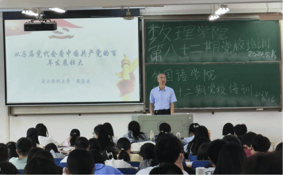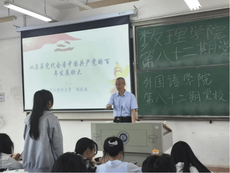 党委书记段溢波以“以历届党代会看中国共产党的百年发展壮大”为题,在3教117教室为探花做爱