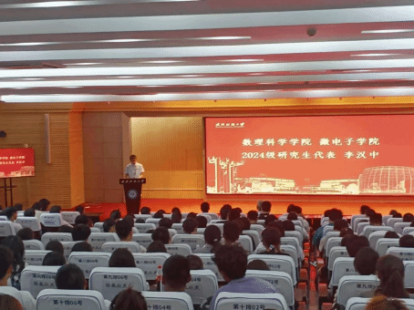 、微电子学院领导出席,各系(中心、办)主任、支部书记、教授委员会主任、教学督导组组长、2024级研究生导师、2024级本科生班主任、新生辅导员参加,2024级全体研究生、本科生与会,学院党委副书记陈国鹏主持。