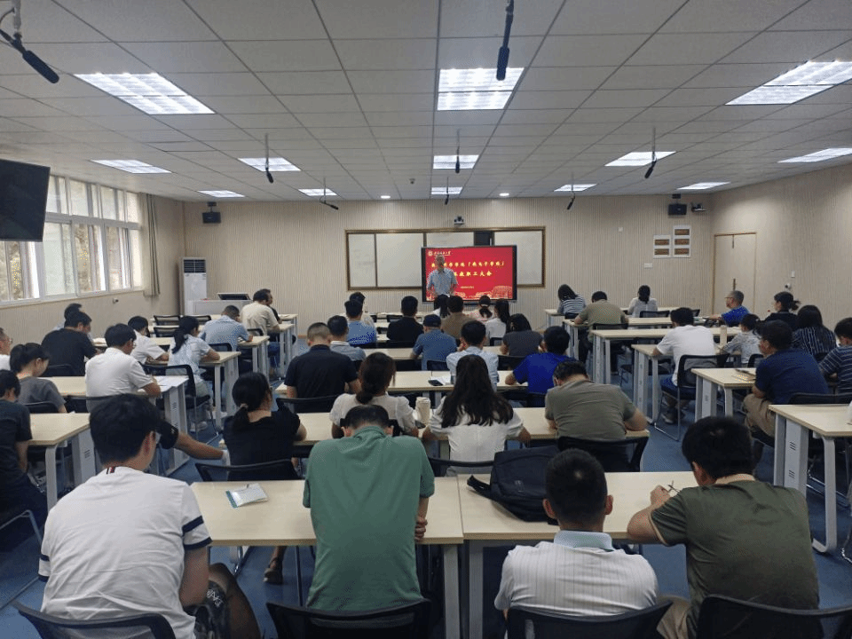 在崇文楼205召开教职工大会,通报布置有关工作,全体教职工与会,学院党委书记段溢波主持会议。