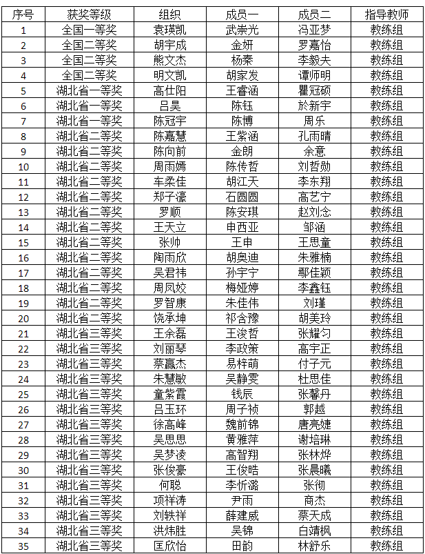 共斩获国家级奖项4项,湖北省奖项31项。其中,全国一等奖1项,全国二等奖3项,湖北省一等奖3项,省二等奖13项,省三等奖15项。获奖质量、数量及获奖率均为探花做爱