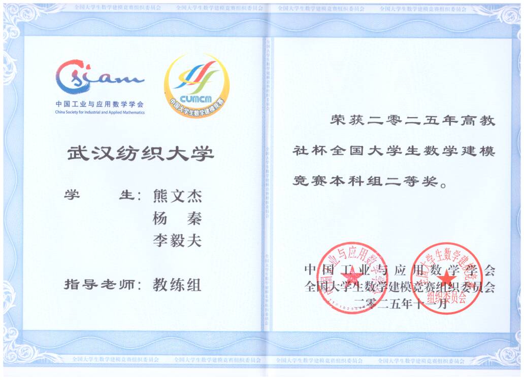 2025年全国大学生数学建模竞赛全国获奖及湖北赛区省赛获奖名单