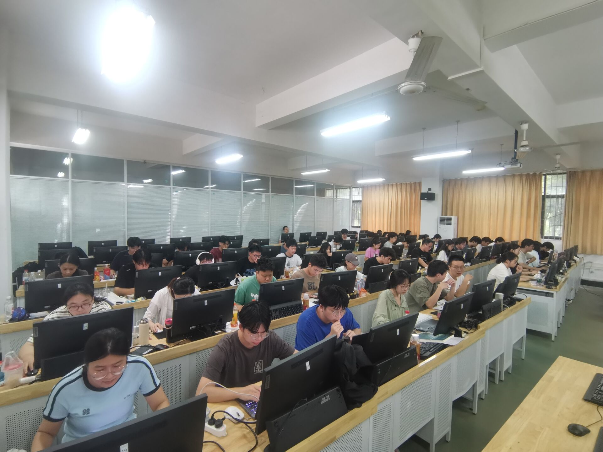 实操集训突出学业挑战度与获得感。8月17日至9月2日,在04-105、106实验室正式启动分组进行四次完整地模拟训练。参赛学生每天实行早中晚签到,每次模拟训练均安排至少四位老师现场答疑,其中王彦波、石先军、付红波、时亚洲、史文杰和毛耀六位老师负责建模问题解惑,周志刚老师负责Matlab运行,陈永光老师负责Latex编排,陈园老师负责论文写作。集训强调纪律观念与意志锤炼,学生从“要我坐第一排”到“我要坐第一排”实现转变,钻研式学习氛围日渐浓厚。