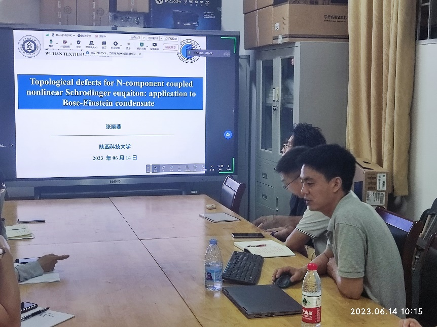 邀请陕西科技大学的张文斐教授做题为“Topological defects for N-component coupled nonlinear Schrodinger equations: application to Bose-Einstein condensate”的学术报告。此次论坛由学院物理学科带头人周勤教授主持,学院相关方向的老师、研究生和本科生参加,会议在4-103举行。
