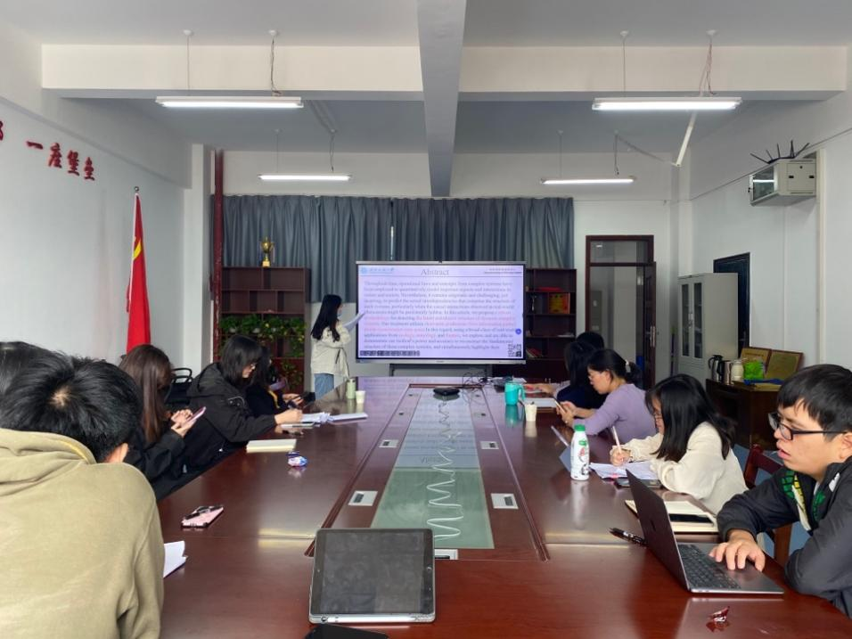应用数学与交叉科学研究中心复杂网络团队于2023年10月第4周进行每周小组组会,小组全体成员和各位导师共同参加。在这次组会上,由三名研二学生分别汇报自己的研究进展,然后老师与同学们对汇报内容进行学术探讨,并对存在的问题给出相应的指导和建议。