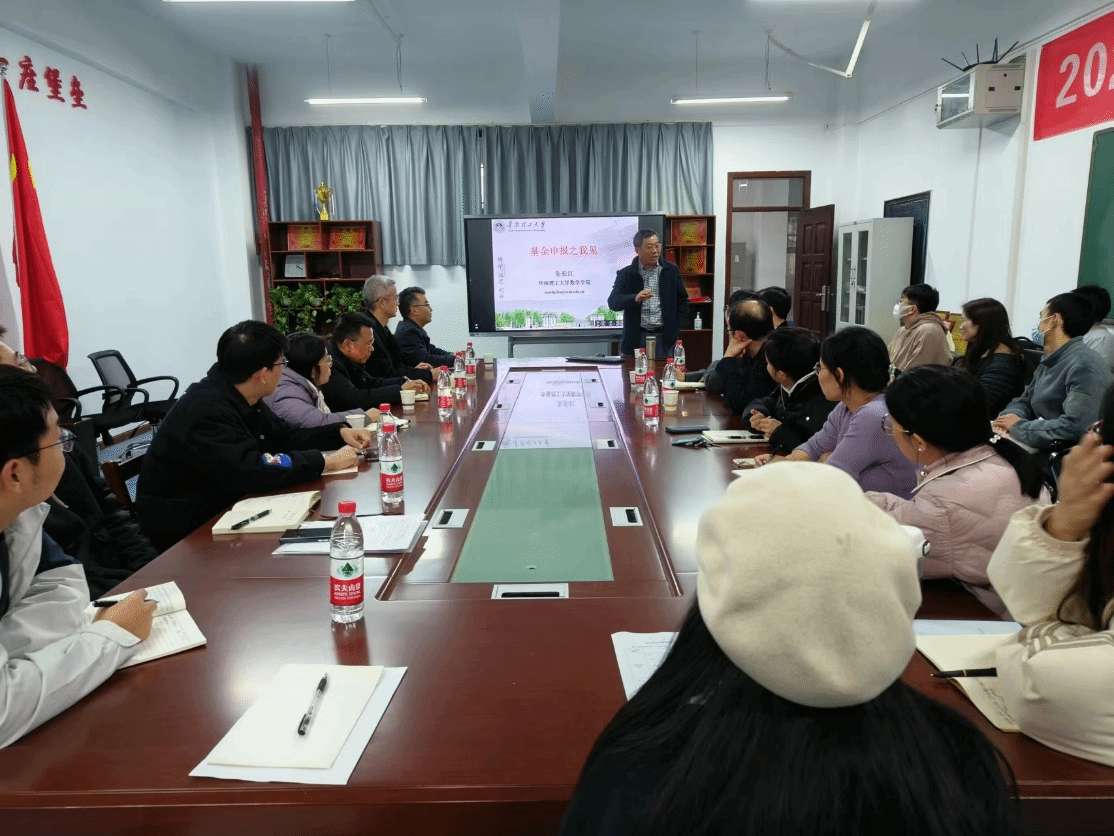 会上,朱长江教授围绕国家基金申报指南,结合个人评审基金的经验以及数学学科申请国基的特殊性,从往年基金申报的基本情况、基金申请的前期准备、撰写申报书需要注意的相关细节、申报技巧及他人的申报经验与体会分享等方面为到会人员做了重要的指导。