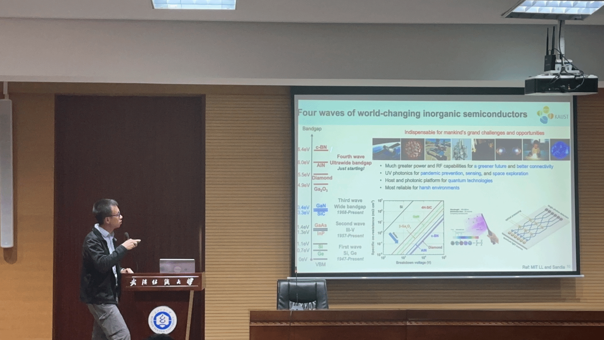 李晓航教授报告探讨超宽带隙半导体技术的第四次浪潮及其对全球科技领域的影响。报告突出AlN、Ga2O3、c-BN和金刚石等UWBG半导体在功率和射频应用上的突破性进展,及其在量子信息技术和深紫外光电子学等尖端领域的应用潜力。这些半导体是继硅和其他传统半导体后的新一代选择,预示着半导体技术的一次重大转变。并展示最新的相关研究成果,包括柔性Ga2O3器件,能够实现极低漏电流的混维结构GaN晶体管,无需刻蚀技术的micro-LED像素,以及集成UVC和可见光LED的单芯片解决方案。此外,还包括在硅基底上外延生长的高质量AlN材料,高组分AlGaO材料的烘烤工艺,以及首个实现的叠层宽带隙CMOS集成电路,这些进展都展示了UWBG半导体在提升设备性能和扩大应用领域方面的巨大潜力。