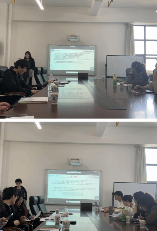 应用数学与交叉科学研究中心数学与纤维材料团队在2024年4月16日上午10:00于崇真楼3028教室进行每周小组组会,小组全体成员和各位导师共同参加。在这次组会上,由研二研一四名学生分别汇报自己的研究进展,然后老师与同学们对汇报内容进行学术探讨,并对存在的问题给出相应的指导和建议。
